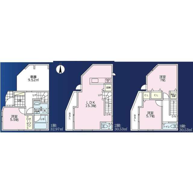 | 間取り(内訳) | 3LDK(洋7/5.7/5.5LDK15.3) | 建物面積 | 94.03㎡ |